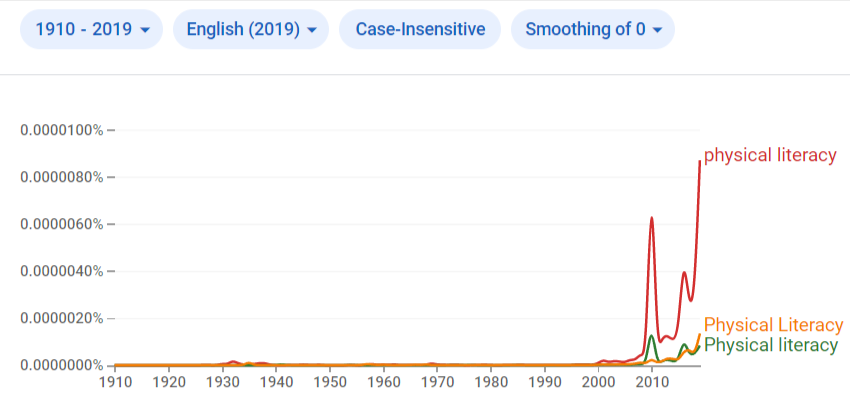 Figure 1: Word use search via Google Ngram: Physical Literacy